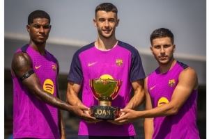 巴萨官方更新社媒动态,晒出三位新援拉什福德、霍安-加西亚、巴德吉手捧甘伯杯奖杯的合照,配文:“为主场首秀做好准备。”